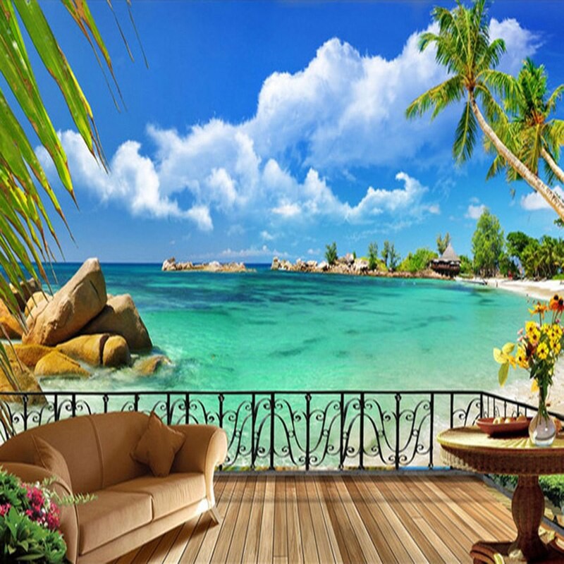 Gambar Pemandangan Pantai Hitam Putih 3D : Kustom Lukisan Dinding Wallpaper 3d Pohon Kelapa Pantai Pemandangan Laut Romantis Fashion Lukisan Dinding Tv Ruang Tamu Sofa Kamar Tidur Latar Belakang Dinding Wallpaper Aliexpress